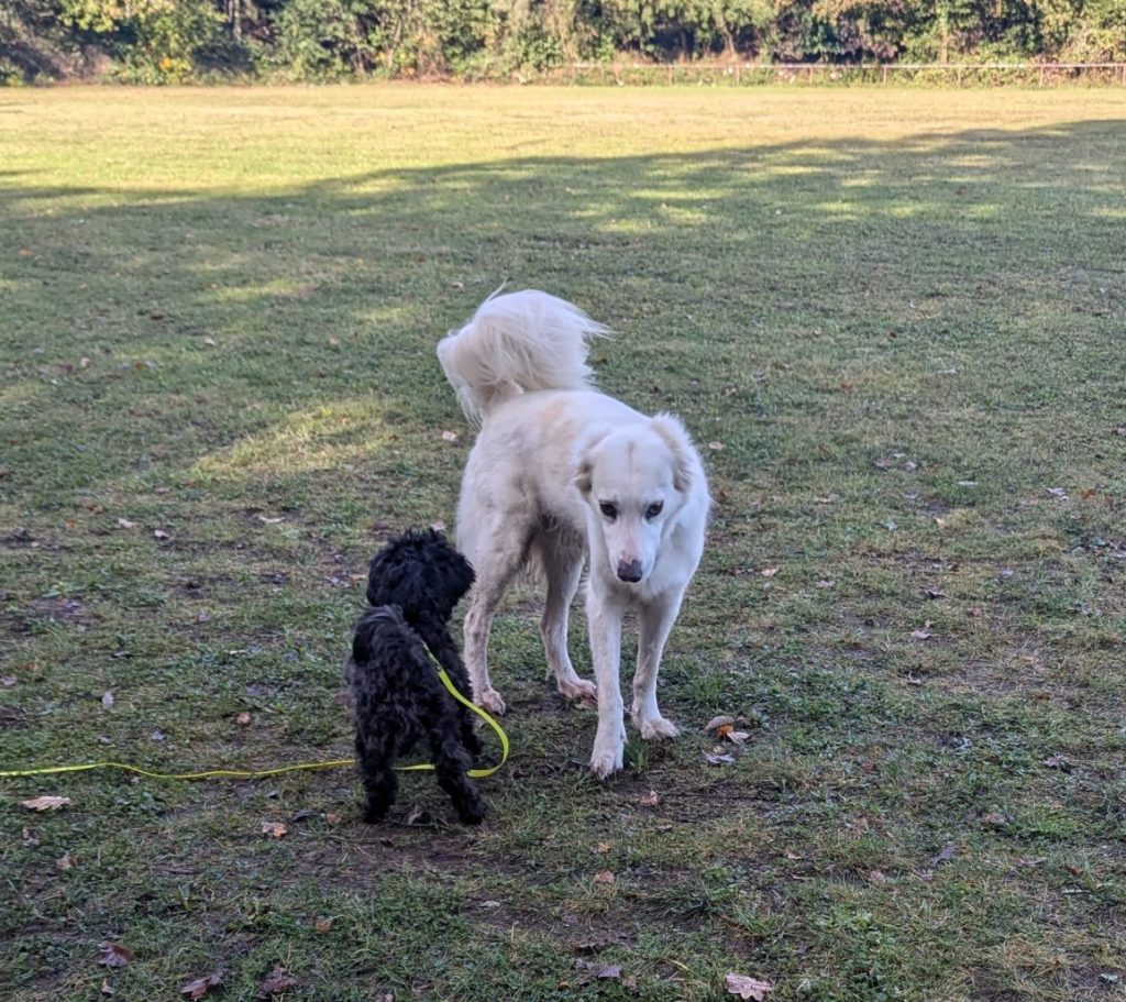 Wir üben verschiedene Techniken, um entspannt durch Hundebegegnungen zu kommen.